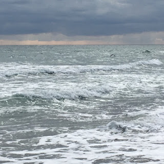 Ya en el punto de partida, cerca del faro, el mar está de Poniente, grisáceo, con olas que no parecen muy grandes, desde dónde estamos.
